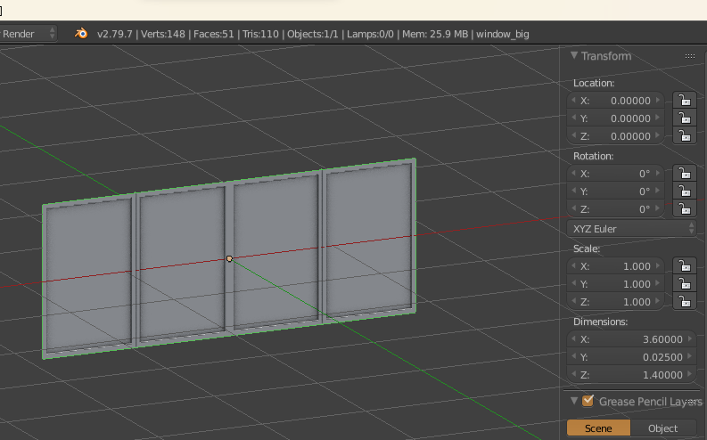 | 1. | Create a mesh at the position 0,0,0 with a scale of 1,1,1. > In my case the window. ![]() |